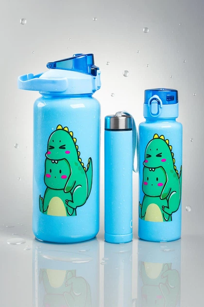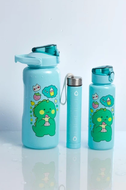 Набір багаторазових пляшок 3 в 1 Дракоша 300мол 700мол 2000мол м'ятний контейнер для води для активних людей (525411)