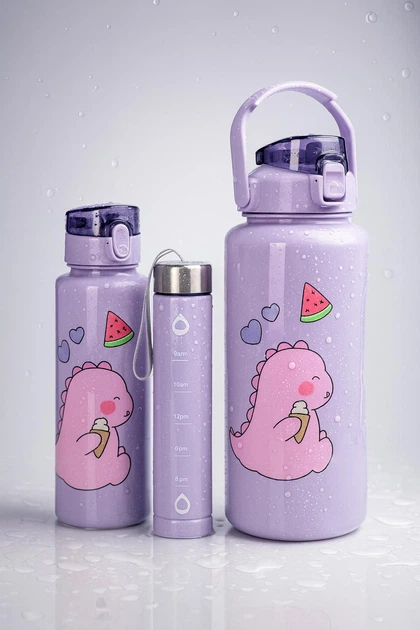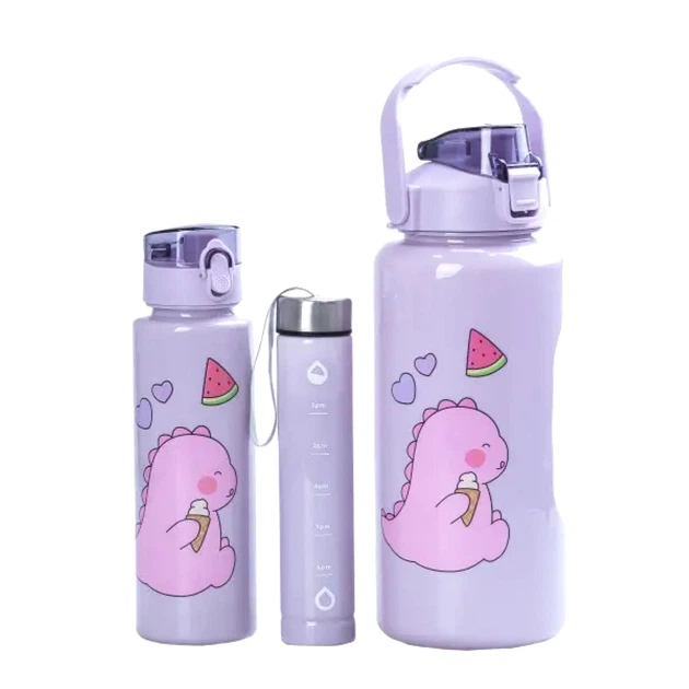 Набір багаторазових пляшок 3 в 1 Дракоша 300мол 700мол 2000мол Фіолетовий контейнер для води для спорту (525410)