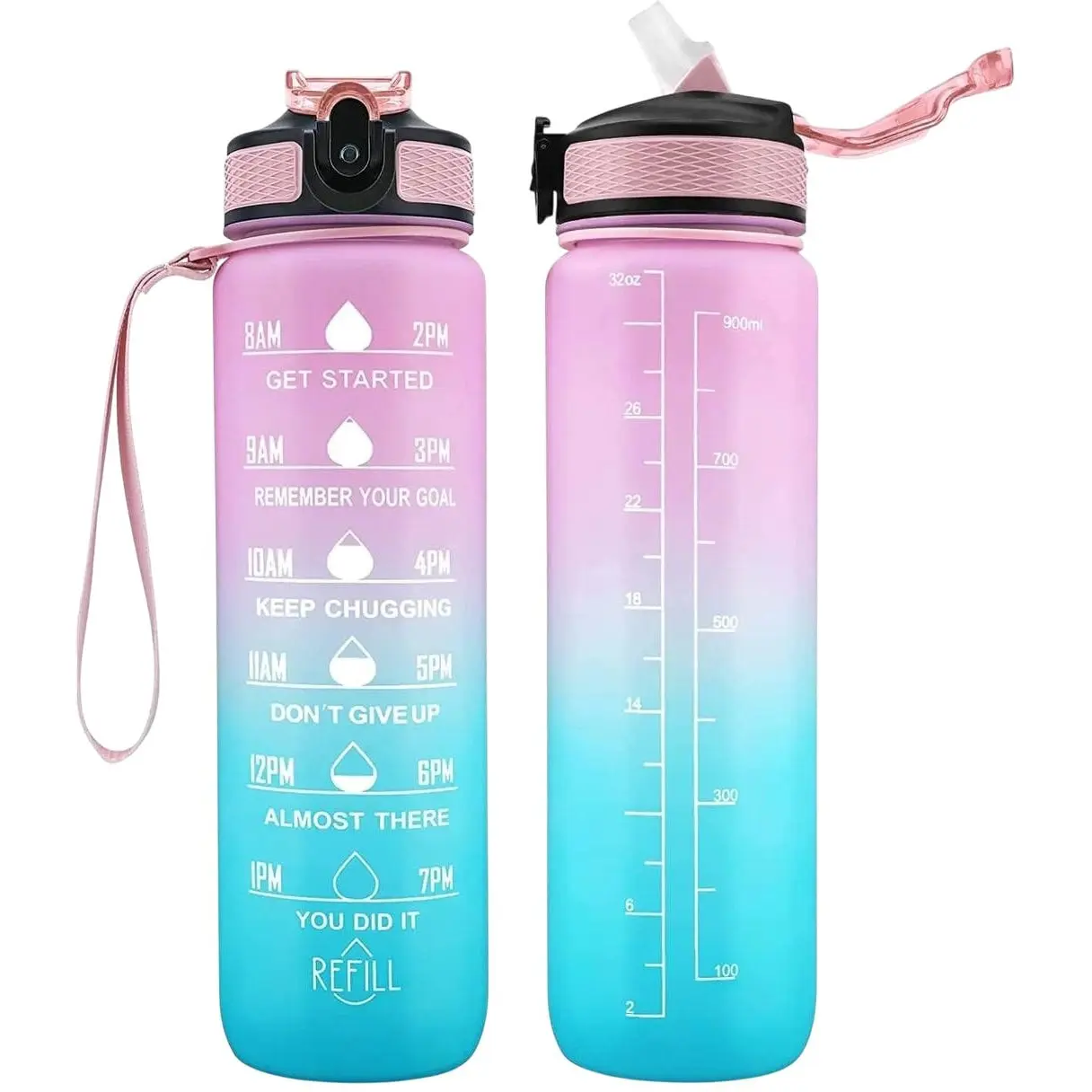 Мотиваційна пляшка OldBro для води з часом без BPA Tritan фітнес спорт прогулянка blue Pink 1 л