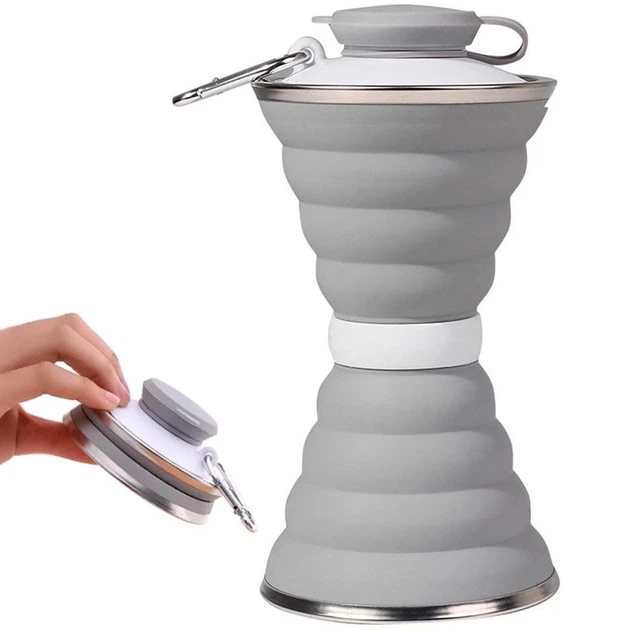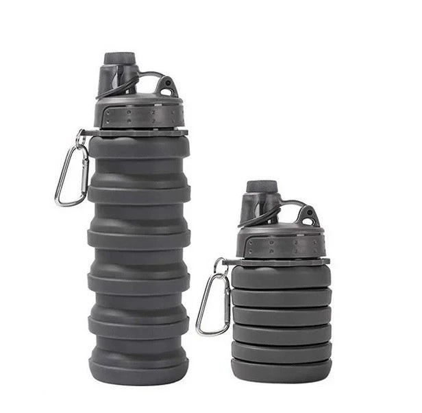Складана силіконова пляшка 500 мл з карабіном, WB02, Сіра/Термостійка пляшка для води
