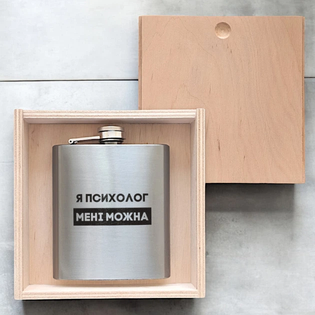 Фляга сталева "Я психолог мені можна" в дерев'яній подарунковій коробці 4940827