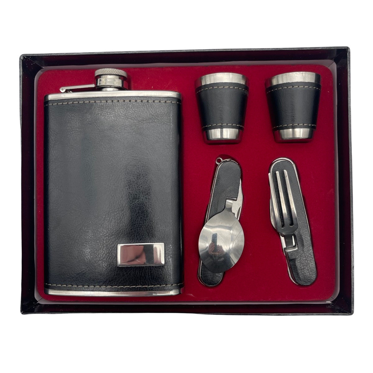 Набор фляга кожа с рюмками, вилкой,ложкой, нож, открывашка №15 набор фляга 15