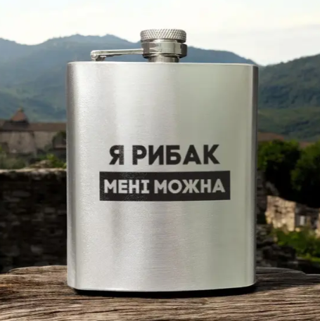 Фляга сталева "Я рибак мені можна" в крафтовій коробці