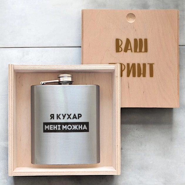 Фляга сталева "Я кухар мені можна" у дерев'яній подарунковій коробці з гравіюванням 4940864