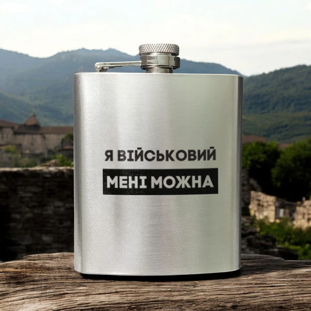 Фляга сталева "Я військовий мені можна" в крафтовій коробці 4940939