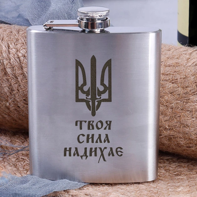 Фляга сталева "Твоя сила надихає", українська, Дерев'яна подарункова коробка з гравіюванням 5034411