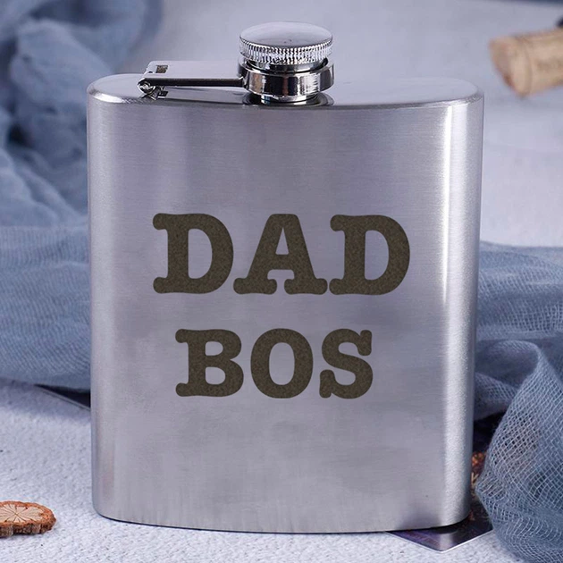 Фляга сталева "Dad boss", англійська, Дерев'яна подарункова коробка, 210 мл