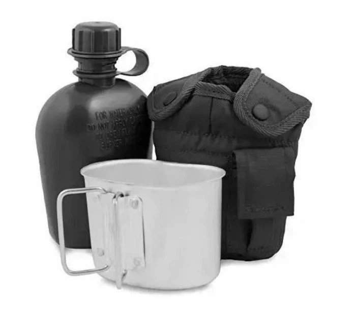 Фляга Mil-Tec 900ML Із алюмінієвою чашкою Чорна US FELDFLASCHE KST.M.BE.U.H.SCHWARZ (14506002-900)