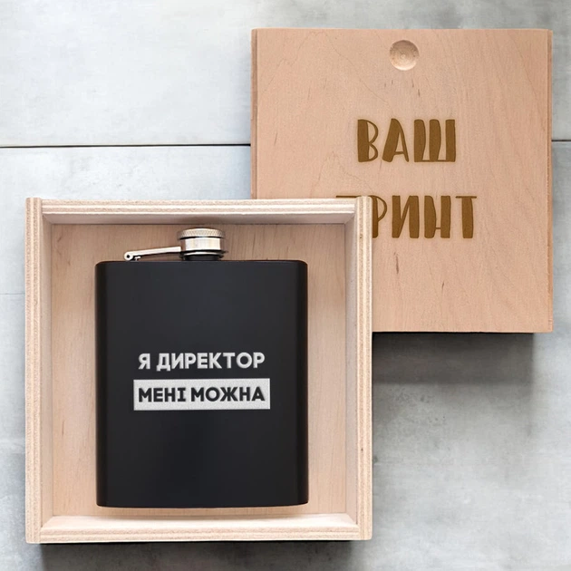 Фляга "Я директор мені можна" у дерев'яній подарунковій коробці з гравіюванням 4940897