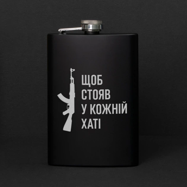 Фляга "Щоб стоячи у шкірній хаті", українська, Дерев'яна подарункова коробка 5034618