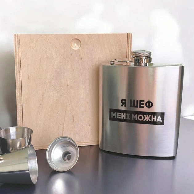 Набір фляга з чарками "Я шеф мені можна" у подарунковій коробці з гравіюванням 4940753