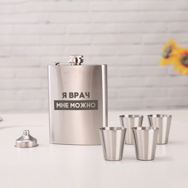 Набір фляга з чарками "Я лікар мені можна" BeriDari (BD-FLASK-193)