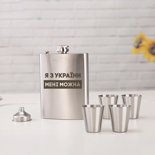 Набір фляга з чарками "Я з України мені можна" у подарунковій коробці з гравіюванням 4666843
