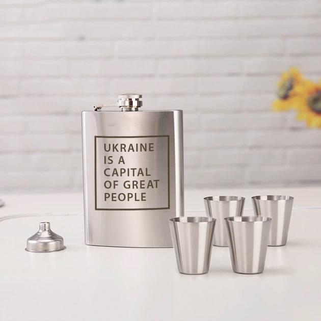 Набір фляга з чарками "Ukraine is a capital of great people" BeriDari (BD-FLASK-173)