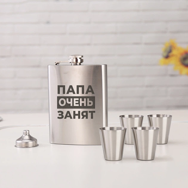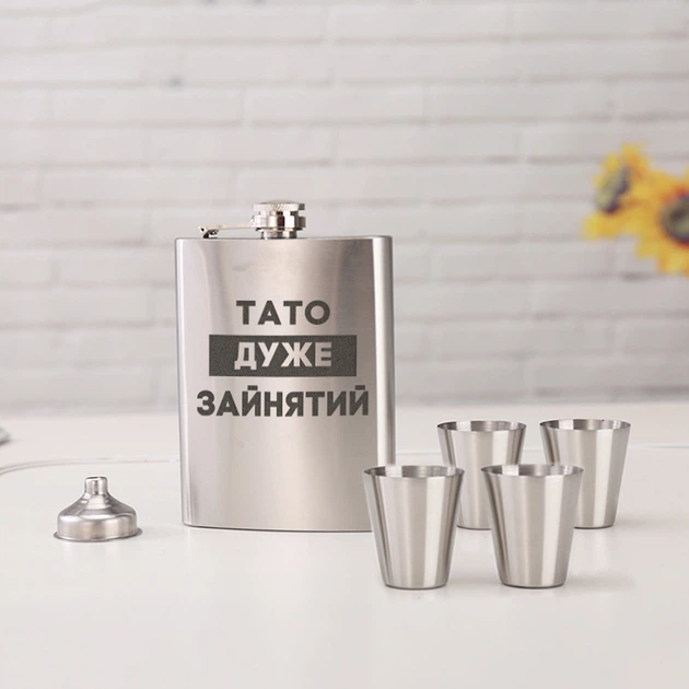Набір фляга з чарками "Тато дуже зайнятий" у крафтовій коробці