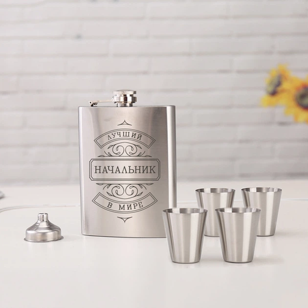 Набір фляга з чарками "Кращий начальник у світі" BeriDari (BD-FLASK-78)
