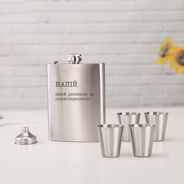 Набір фляга з чарками "Напій який дешевше за психотерапевта" PN0669