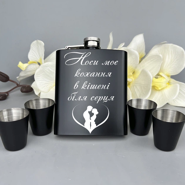 Фляга з рюмками з гравіюванням Носи моє кохання Чорний