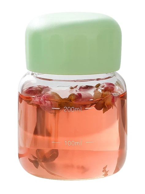 Пляшечка для напоїв My up з потовщеним дном скляна 9х6,6 см прозора з зеленою кришкою (CK-159 )