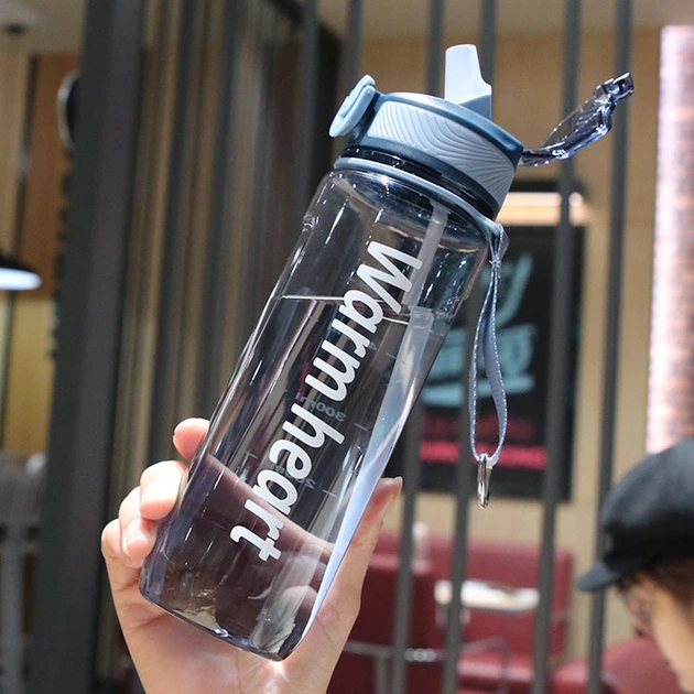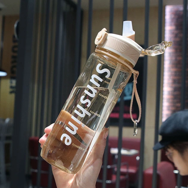 Пляшка для води з трубочкою 820 мл дитяча прозора фляга для напоїв з дозатором ручкою та ремінцем