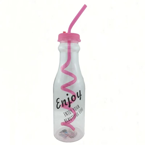 Пляшка для води з трубочкою 600мл розовій (SZ-1135)