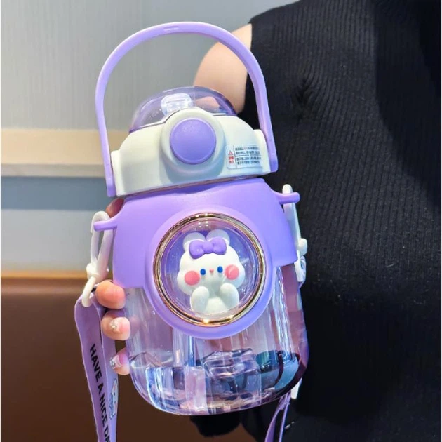 Пляшка для води дитяча 650 мл з ремінцем, фіолетовий(HP-14-43V)(WB)