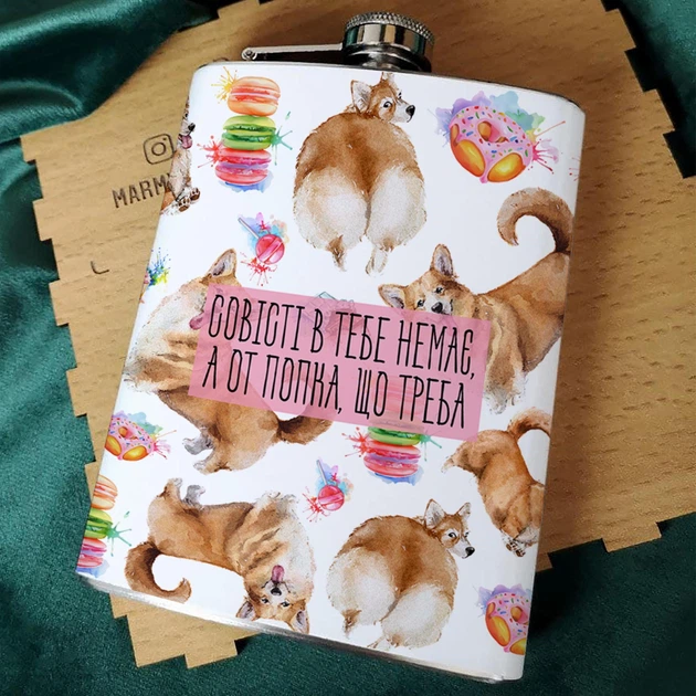 Фляга для алкоголю з нержавіючої сталі Marmyza "Коргі. Совісті в тебе немає" - 500 мл