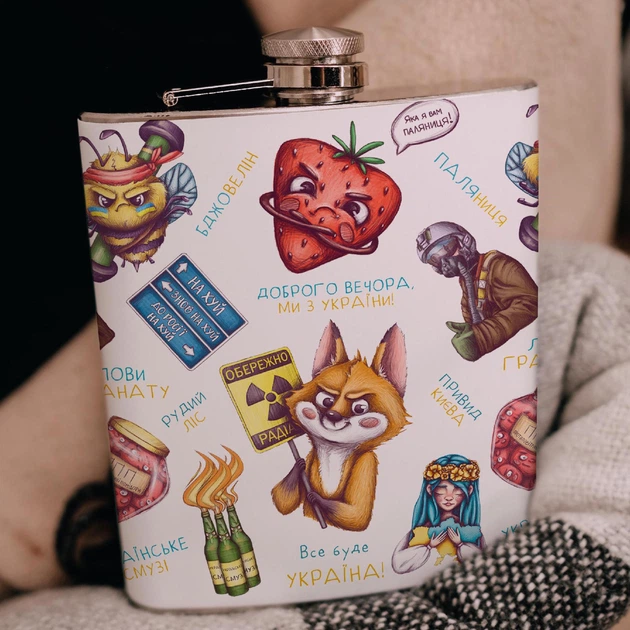 Фляга для алкоголю з нержавіючої сталі Marmyza "Колаж: все буде Україна"" - 240 мл