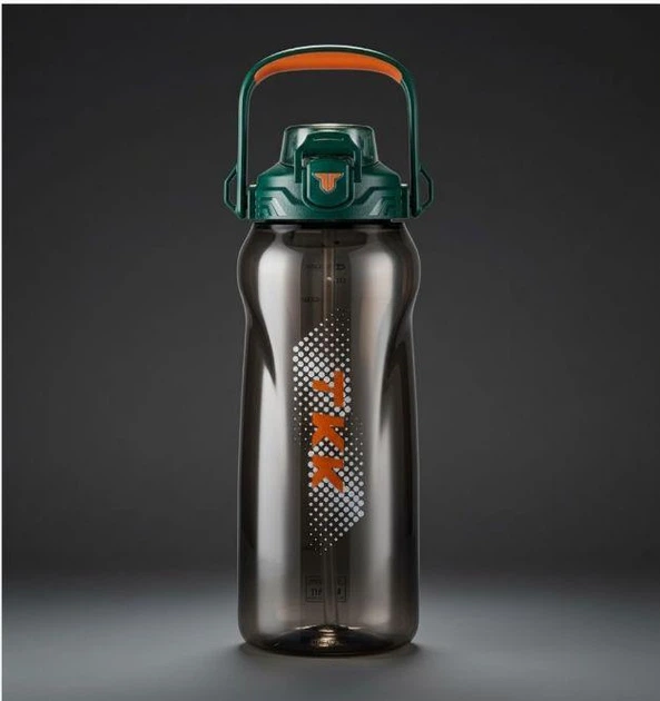 Пляшка для води TKK спортивна 2000 мл з соломинкою, ручкою та ремінцем, герметична пластикова. Зелена
