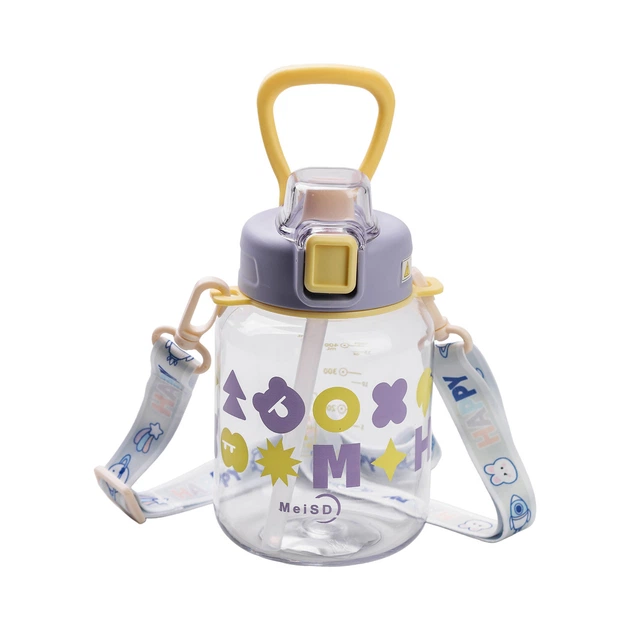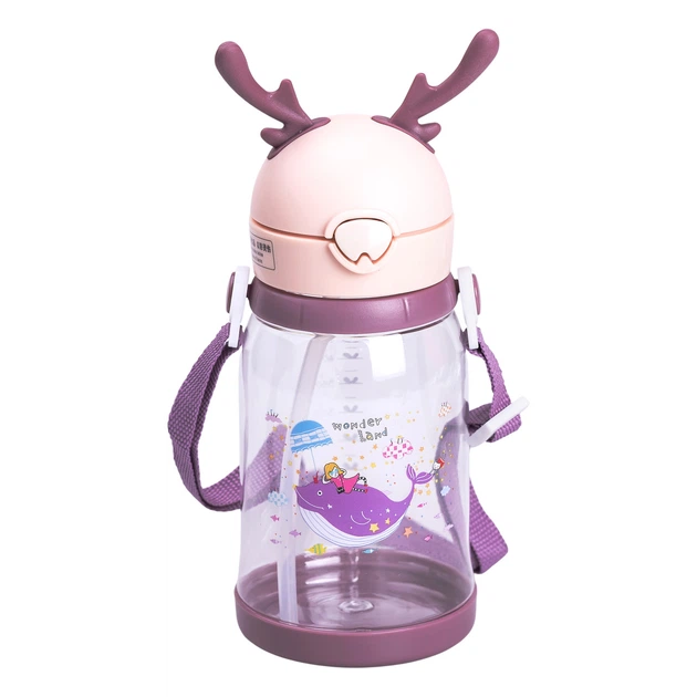 Дитяча пляшка для води для прогулянки з трубочкою та ремінцем 650 мл пляшечка поїльник для дітей в школу Фіолетова
