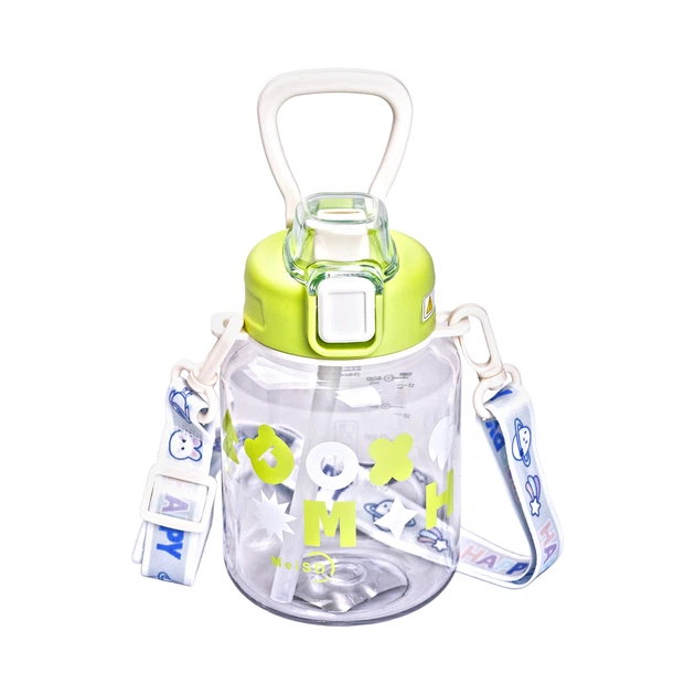 Дитяча пляшка для води для прогулянки з трубочкою та ремінцем 650 мл пляшечка поїльник для дітей в школу Зелена