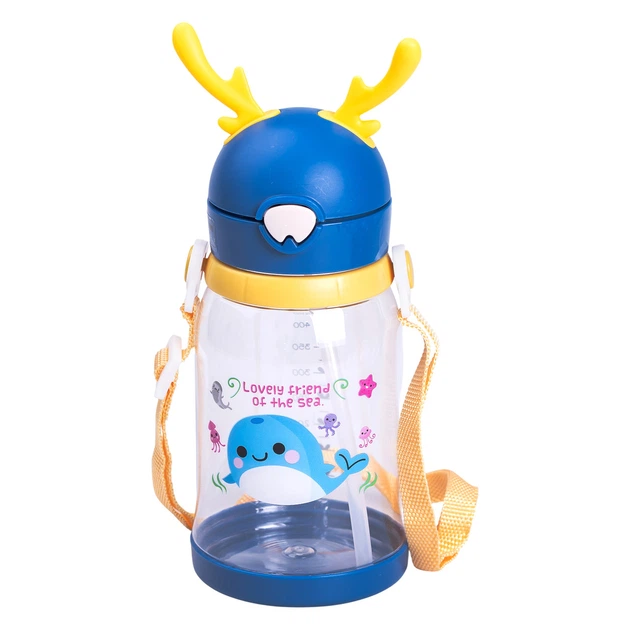 Дитяча пляшка для води для прогулянки з трубочкою та ремінцем 560 мл пляшечка поїльник для дітей в школу Синя