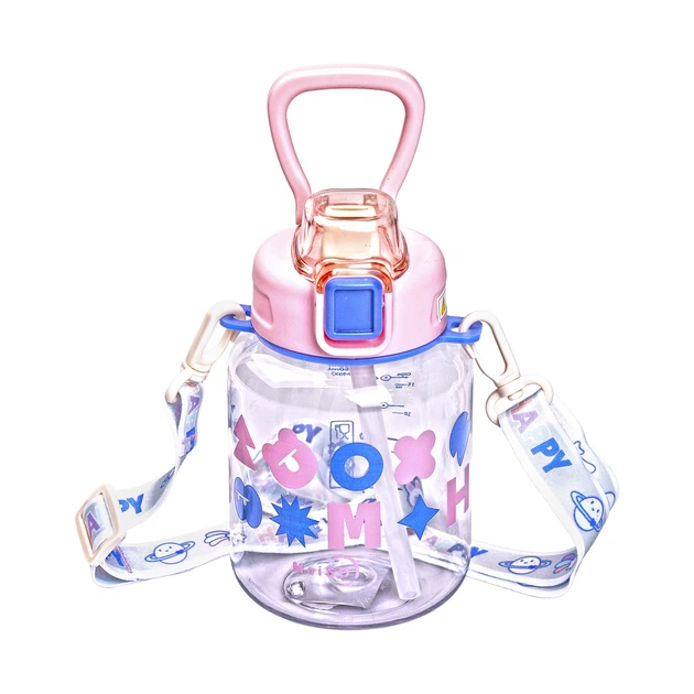 Дитяча пляшка для води для прогулянки з трубочкою та ремінцем 680 мл пляшечка поїльник для дітей в школу Рожева