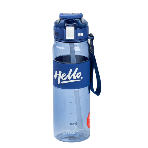 Пляшка для води Cille Hello 860 мл спортивна з ремінцем та трубочкою Синя