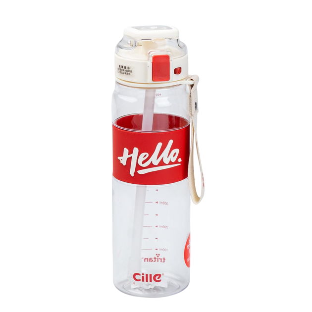 Пляшка для води Cille Hello 860 мл спортивна з ремінцем та трубочкою Червона
