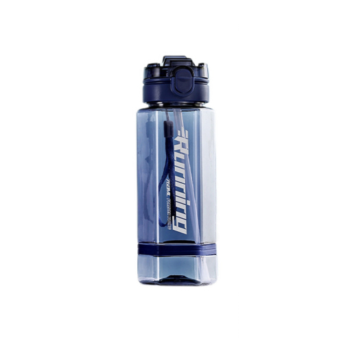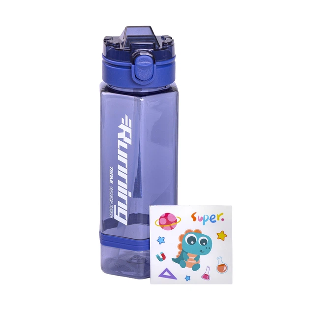 Пляшка для води 760 мл з трубочкою та наліпками синя, Багаторазова ємність для напоїв, Зручний аксесуар для тренувань та акт