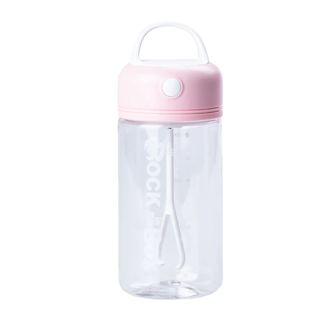 Пляшка-шейкер для води 380 мл Рожева – електрична фляга з ручкою, вінчиком та герметичною кришкою, пластикова, спортивна, дл
