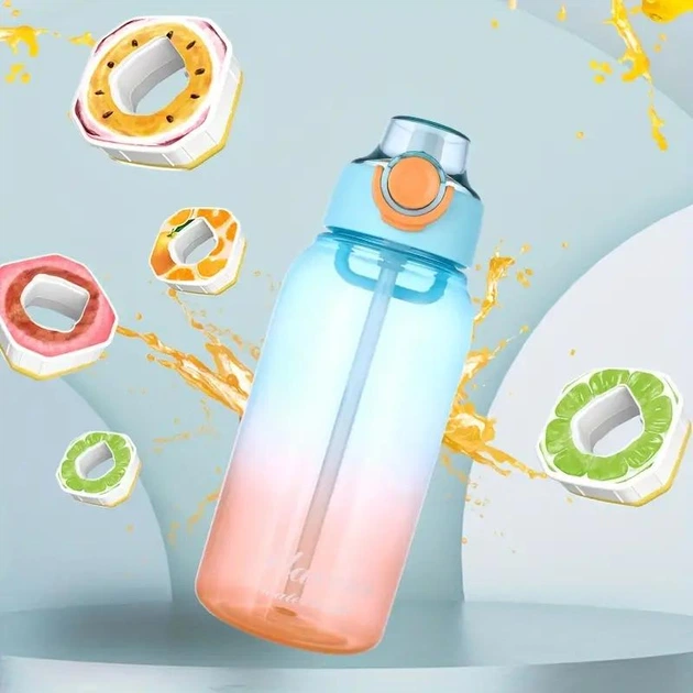 Пляшка для води 1.0л пластикова з соломинкою та ручкою