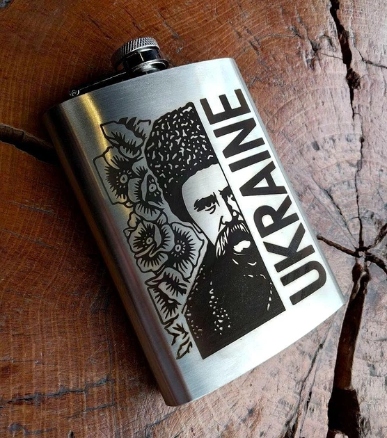Фляга для алкоголю з українською символікою іменна з нержавіючої сталі 240 мл