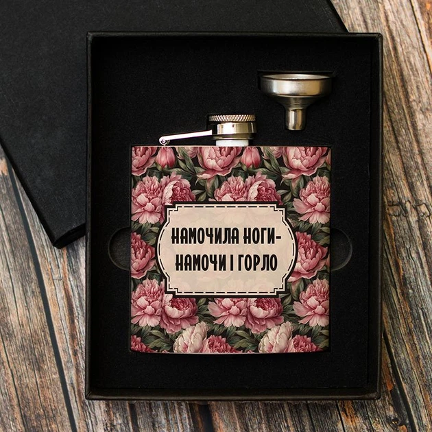 Фляга для алкоголю з лійкою у боксі Cupmugs "Намочила ноги намочі і горло" 180 мл.