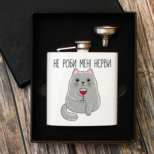 Фляга для алкоголю з лійкою у боксі Cupmugs "Не роби мені нєрві" 180 мл.