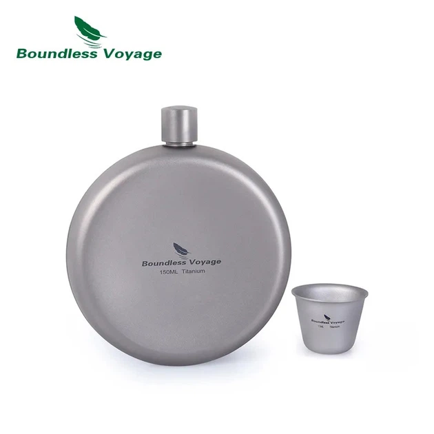 Фляга титанова для алкогольних міцних напоїв Boundless Voyage 150 мл з титановою чаркою 15 мл лійка та чохол