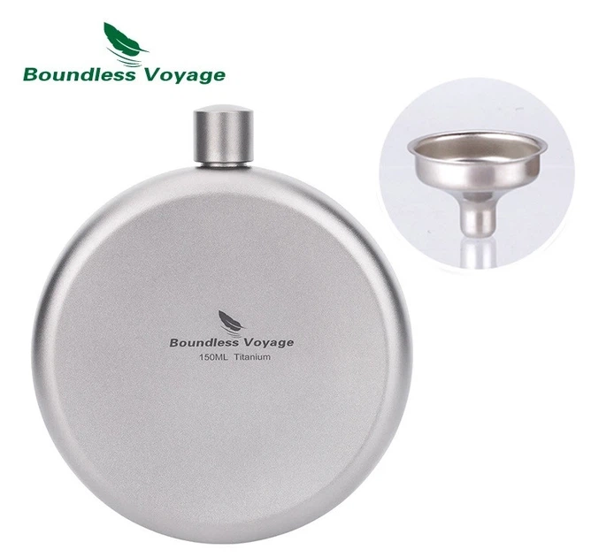 Фляга титанова для алкогольних міцних напоїв Boundless Voyage 150 мл з лійкою та чохолм