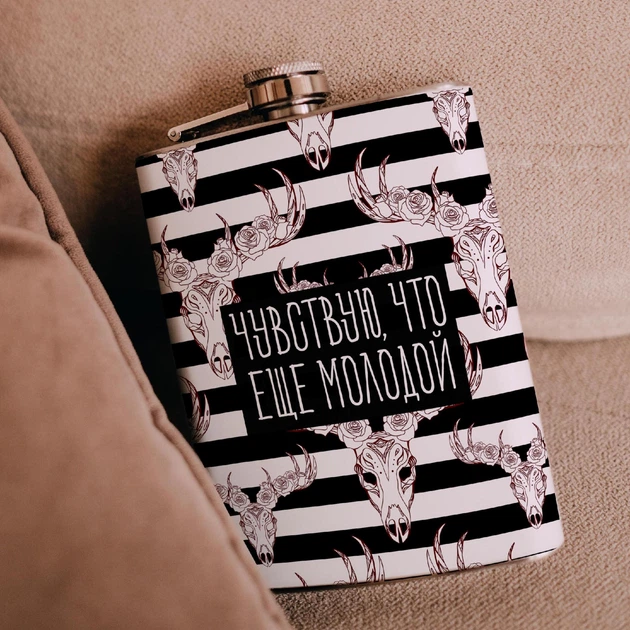Фляга для алкоголю з нержавіючої сталі Marmyza "Череп - Молодий" - 240 мл