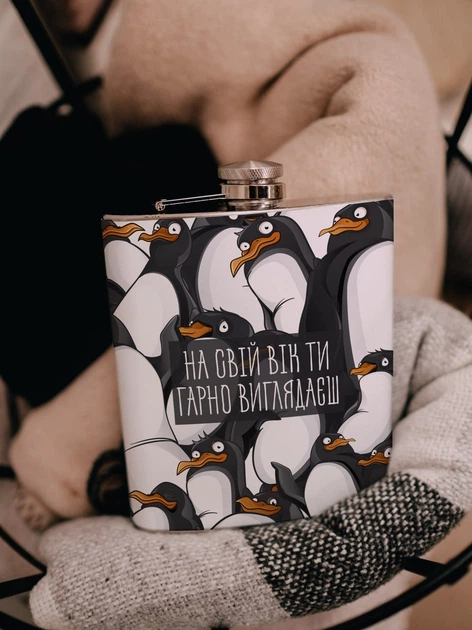 Фляга для алкоголю з нержавіючої сталі Marmyza "Пінгвіни. На свій вік" - 240 мл