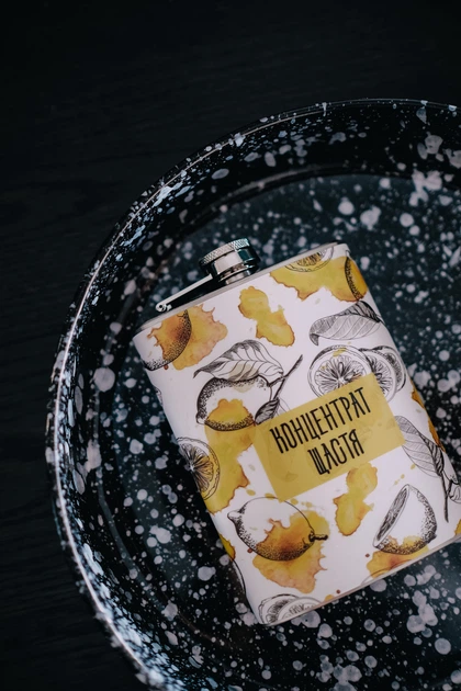 Фляга для алкоголю з нержавіючої сталі Marmyza "Лимони: Концентрат щастя" - 240 мл