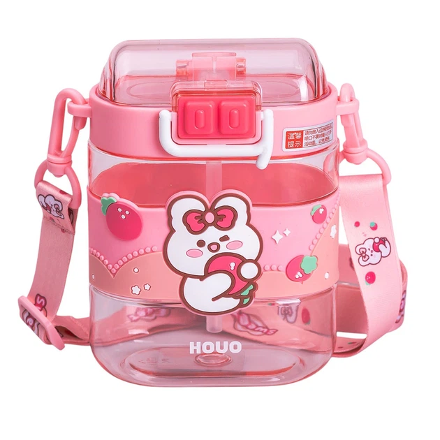Дитяча пляшка для води Yiwu Sweet 560 мл з ремінцем, рожева
