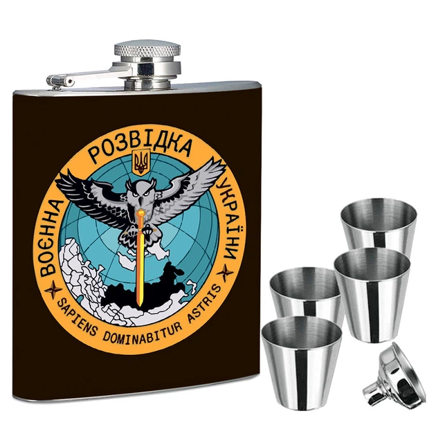 Фляга ГУР + чотири стаканчики + лійка 7 oz в подарунковому наборі LB-015U2