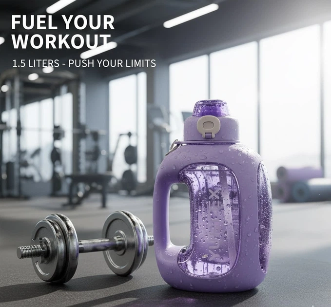 Еко-пляшка YURLEX для води із безпечного пластику 1500 мл. Фіолетова