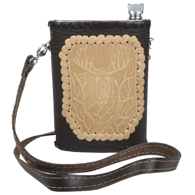 Фляга харчова для рідин Витязь (0.7л), в кожанной обробці